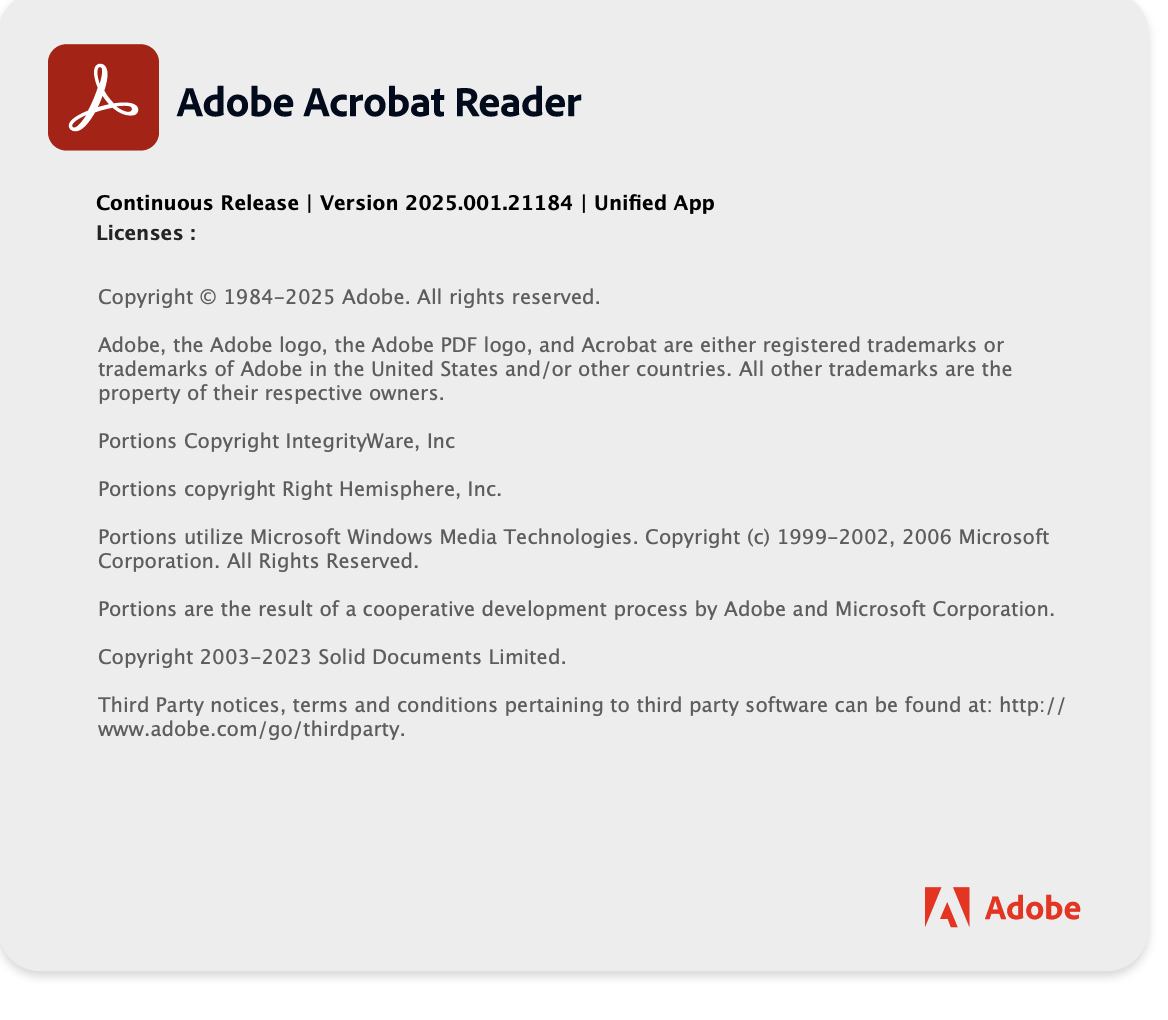 Adobe Acrobat reader 2025.001.21145