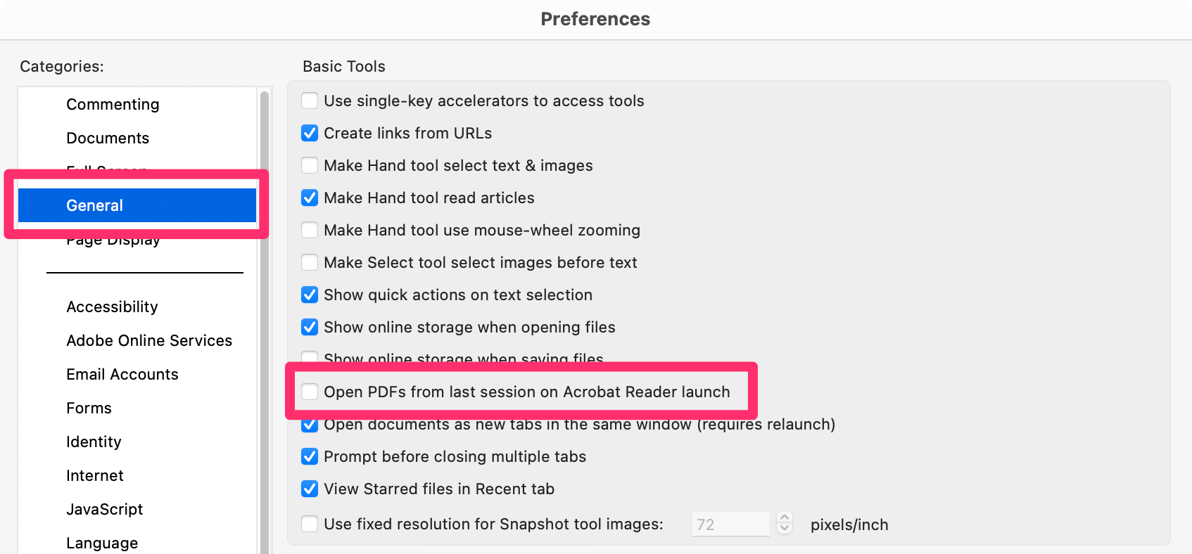 pref:OFF Open PDFs from last session on Acrobat Reader launch