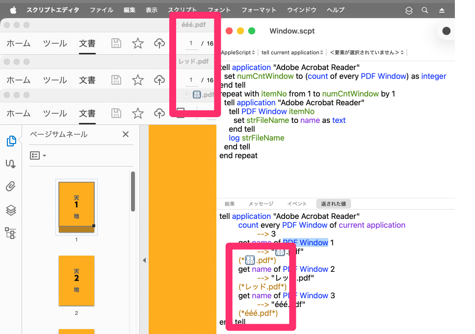 set listDoc to (name of every PDF Window) as list