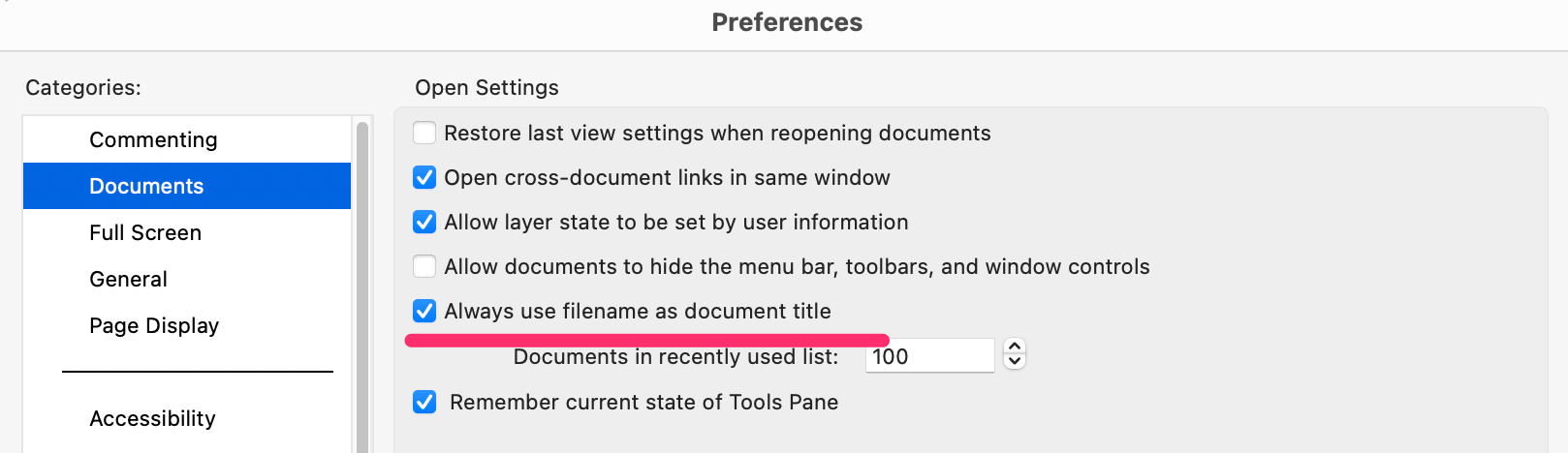 I noticed something today — the title shown in the PDF Window actually depends on the settings.