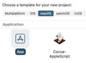 I recently tried to create a new ASOC project in Xcode but I cannot now find how to do this. It has been a while since I last created a project, back then you would open Xcode, select Application then select Cocoa-Applescript Application but all I see now is App. Any guidance would be gratefully accepted!