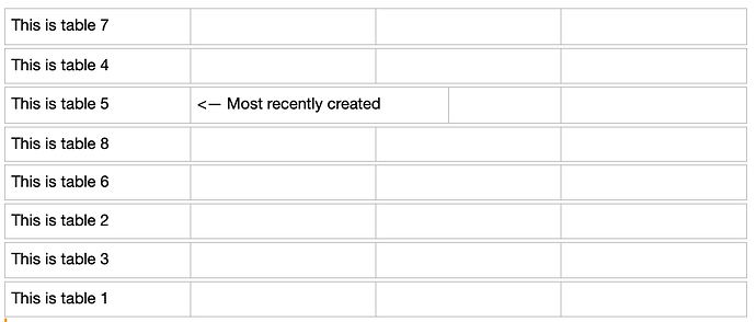 – and just for grins, add a new table somewhere in the middle of the mix and see what you get: