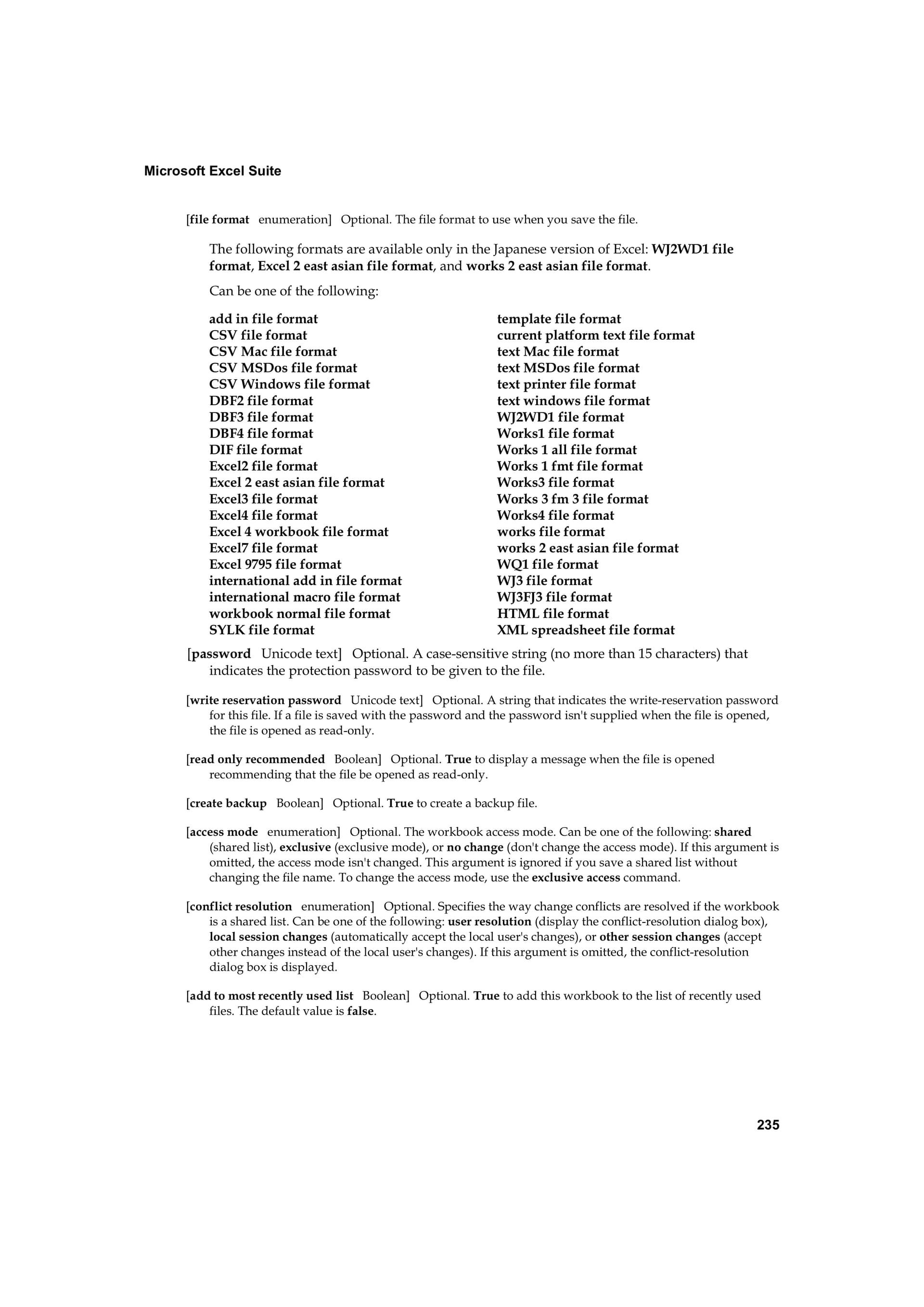 I tested the following command and verified it to produce an XML Excel file even without appending .xlsx. The labeled parameter file name equally accepts a HFS string or a document’s name if the document is open.