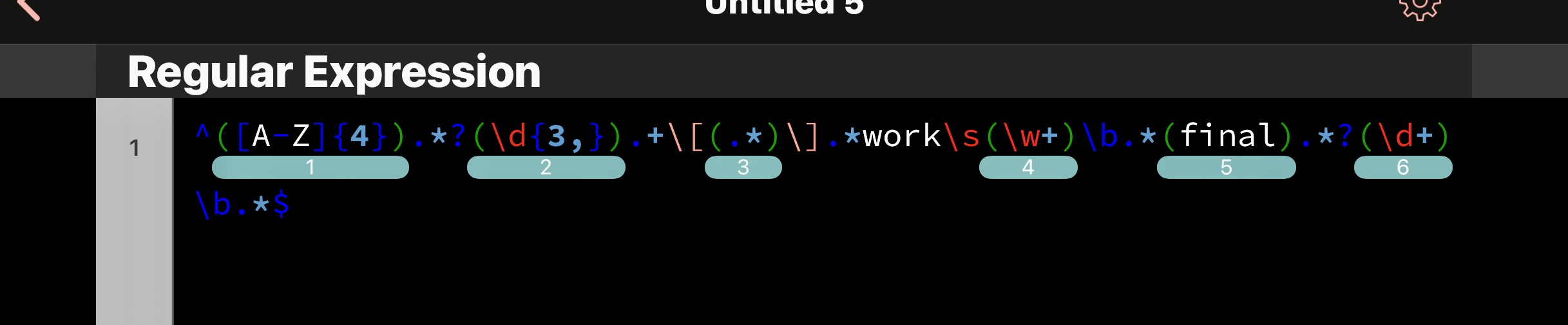 ^([A-Z]{4}).*?(\d{3,}).+\[(.*)\].*work\s(\w+)\b.*(final).*?(\d+)\b.*$