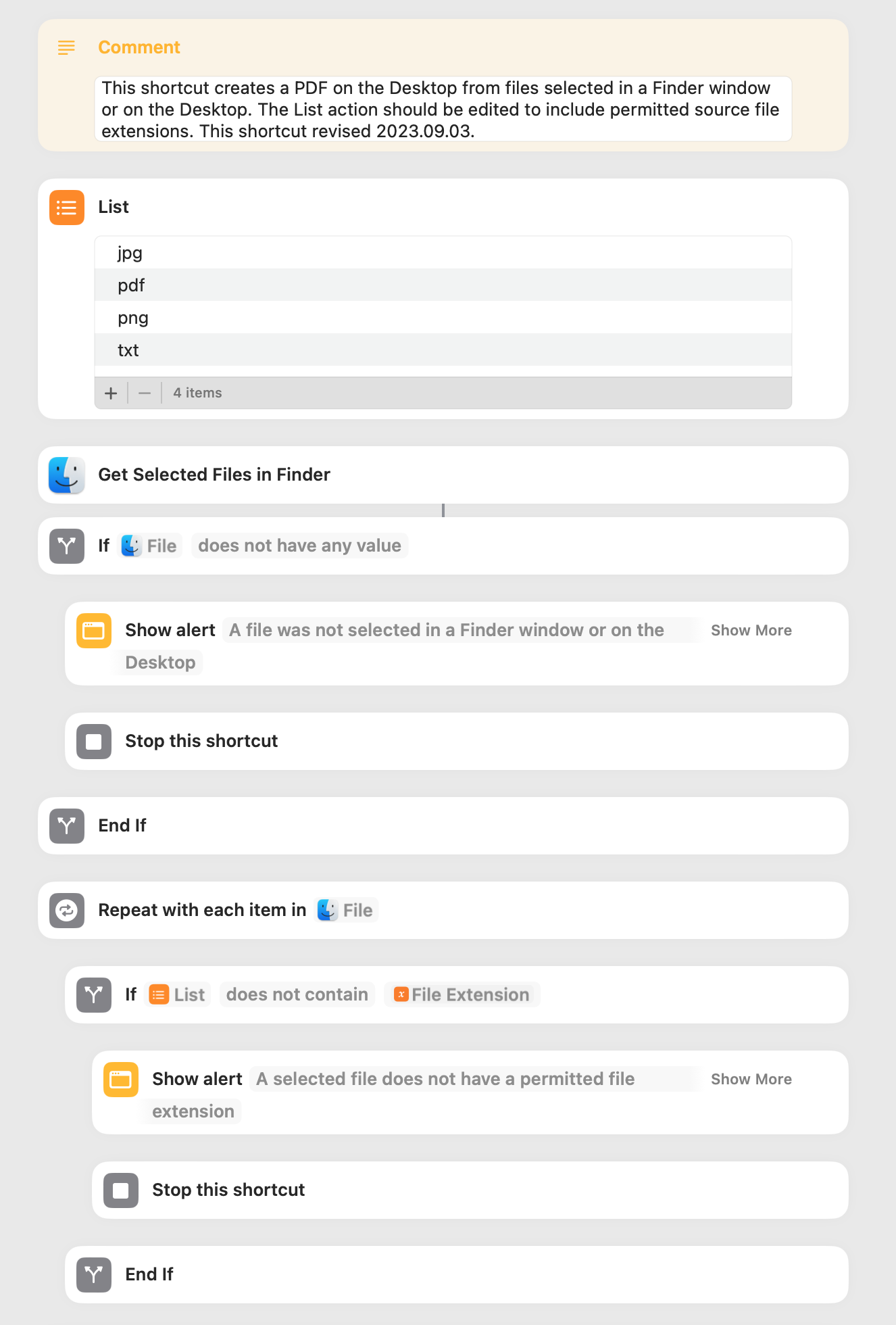Apple encourages the use of Magic (unnamed) Variables, which makes it unnecessary to formally set the output of an action to a Manual Variable. This contributes to code brevity but can make a shortcut difficult to follow. The shortcut contained below uses Magic Variables only.