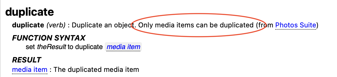 First off, Photos has no mechanism to duplicate folders or albums. It does have a duplicate command, but it is explicitly related to media items only: