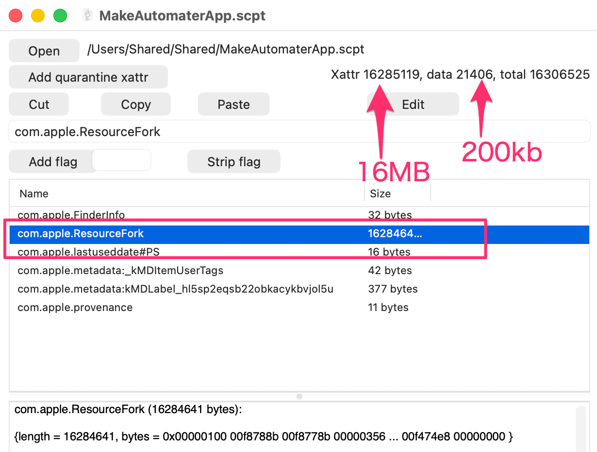Although it is possible to remove resource forks using the xattr command, doing so may damage the structure of the script itself.