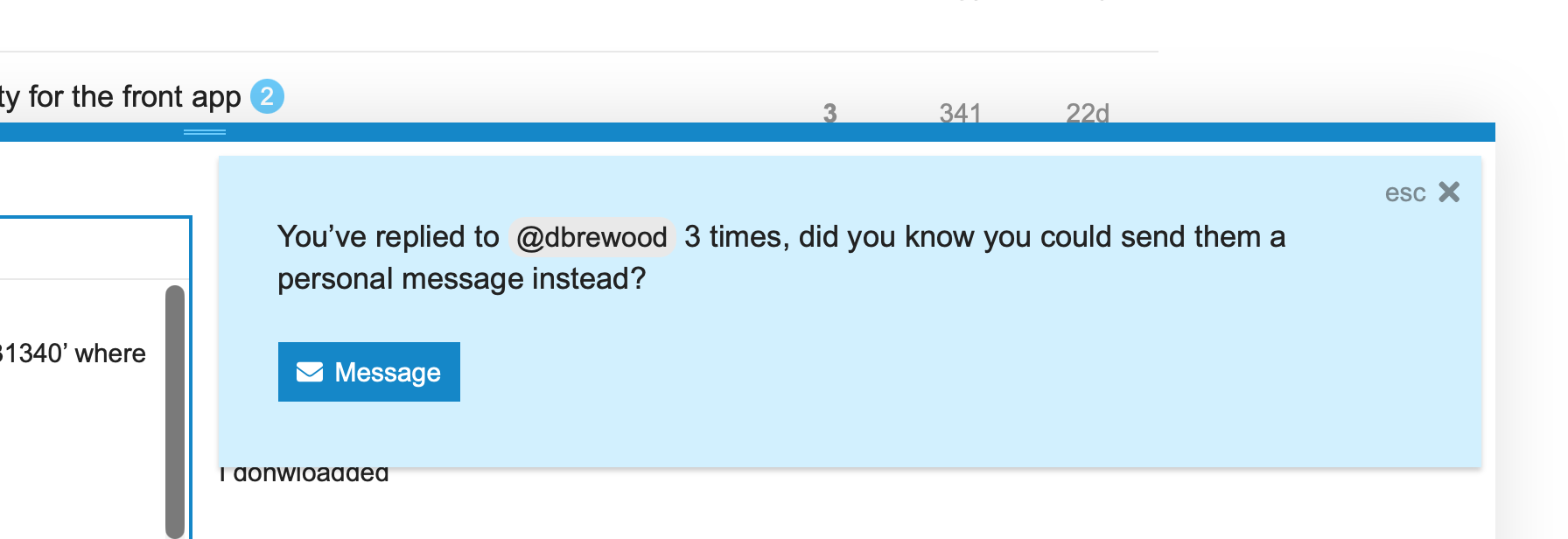 It looks like you and Ed exchanged about 6 messages in one day which does not seem excessive, but this probably tripped some sort of rate limiter in the Discourse system. No admin warnings appeared for me when this happened to you so I have no insights into the limit(s) you may have exceeded. I’ve poked around to see if I can spot a setting that controls this without success. Let me know when/if this happens again and I’ll look further.